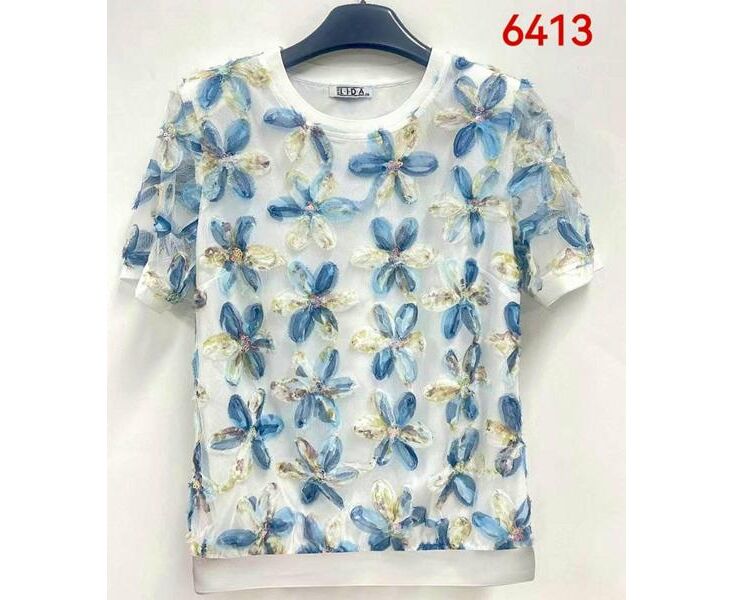 футболка жіноча 6413 white-blue р.52-62 "LIDA" недорого оптом від прямого постачальника