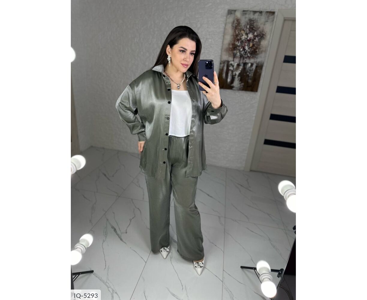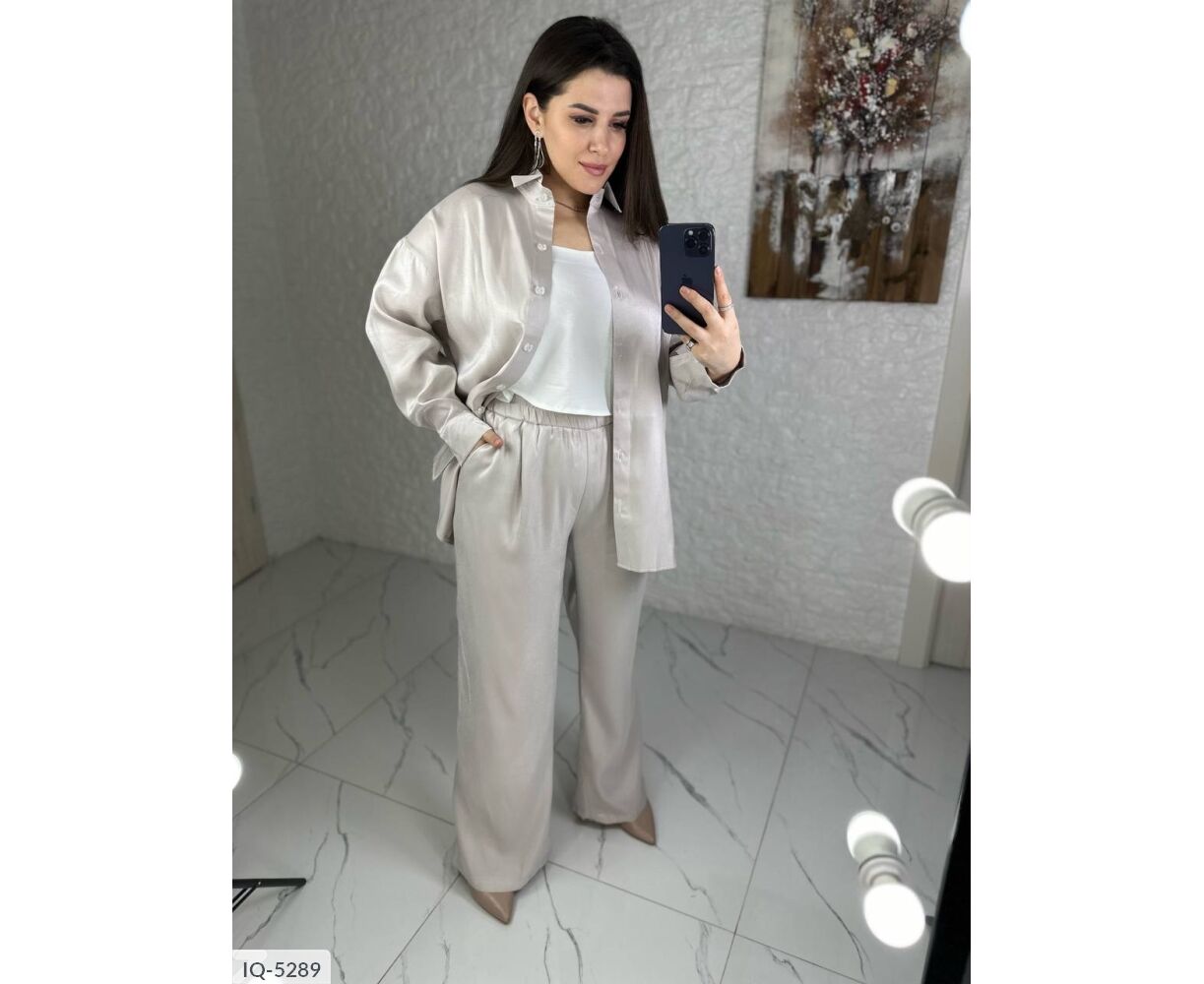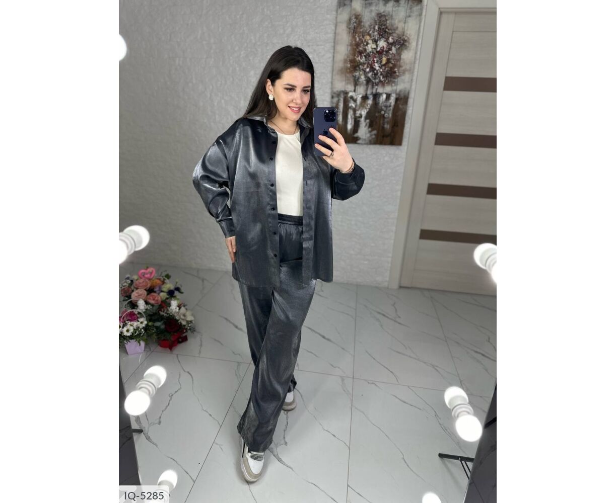 Костюм-двійка: сорочка + штани кльош, блискуча, якісна тканина зі срібним напиленням, переливається гарним сяйвом на світлі, класні кольори, в такому костюмі ви не залишитися не поміченою