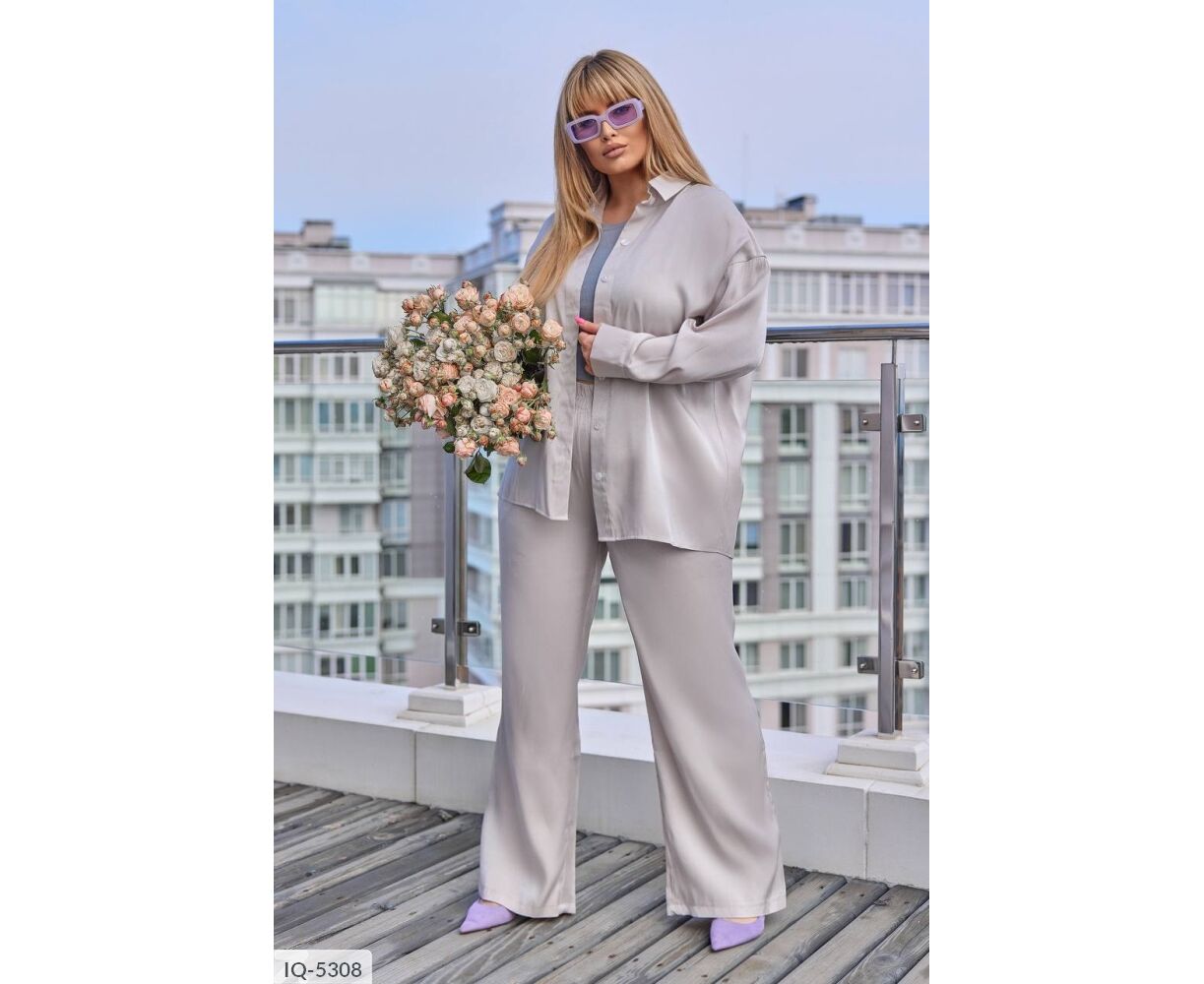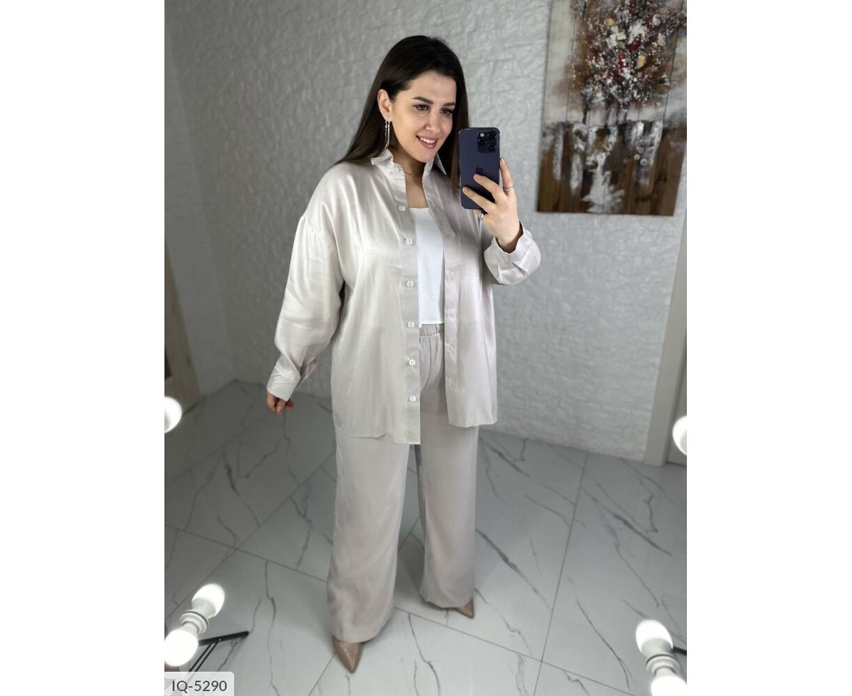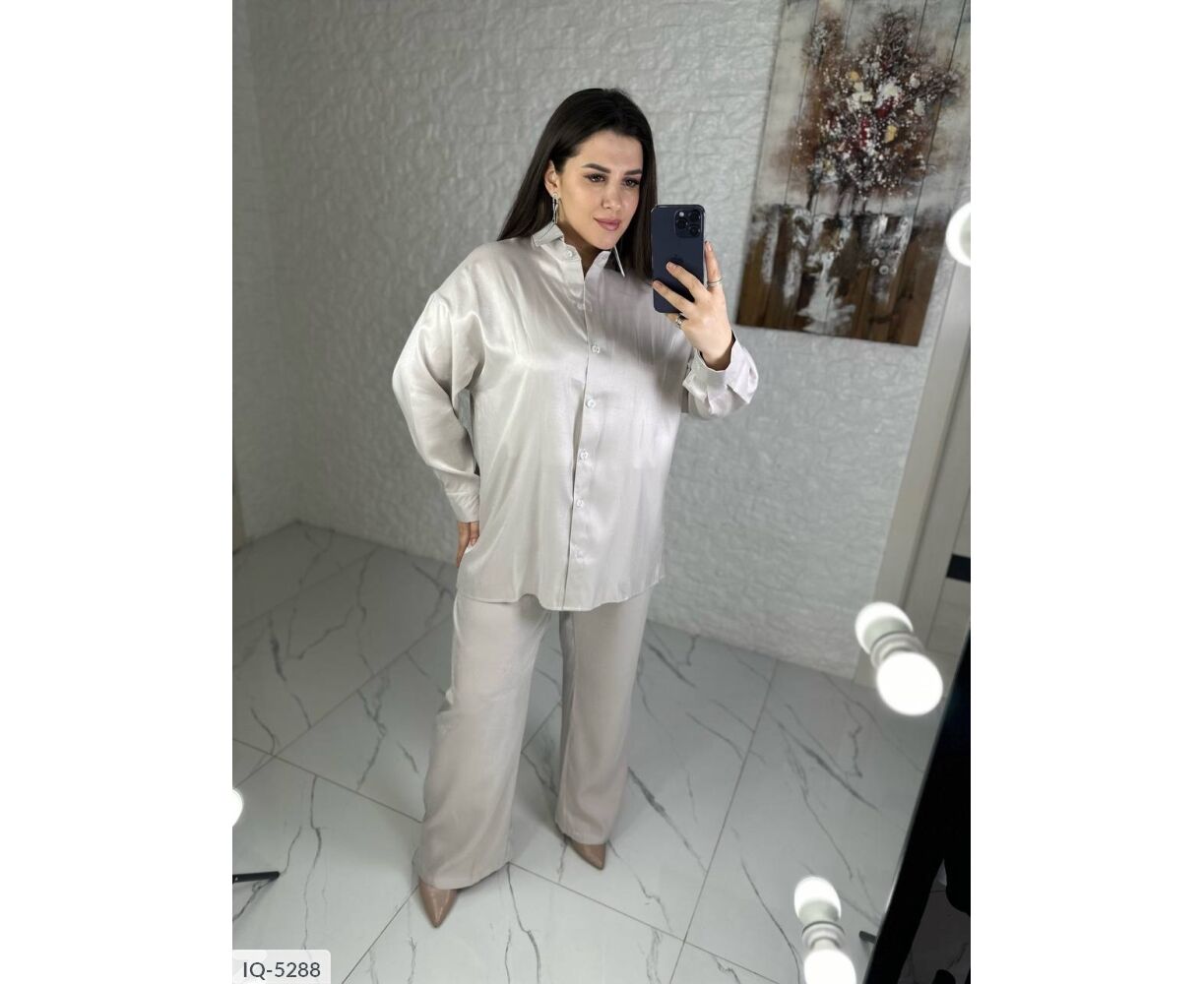 Костюм-двійка: сорочка + штани кльош, блискуча, якісна тканина зі срібним напиленням, переливається гарним сяйвом на світлі, класні кольори, в такому костюмі ви не залишитися не поміченою
