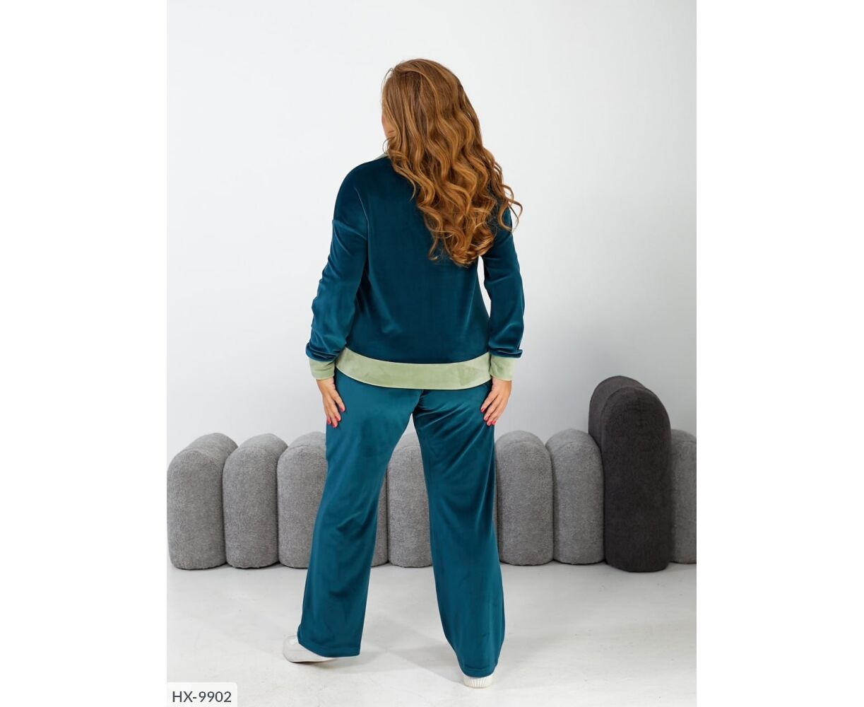 Елегантний светр з поло-коміром і довгим рукавом. Штани вільного крою, високої посадки, з кишенями. Розтяжність велюру + 8 см