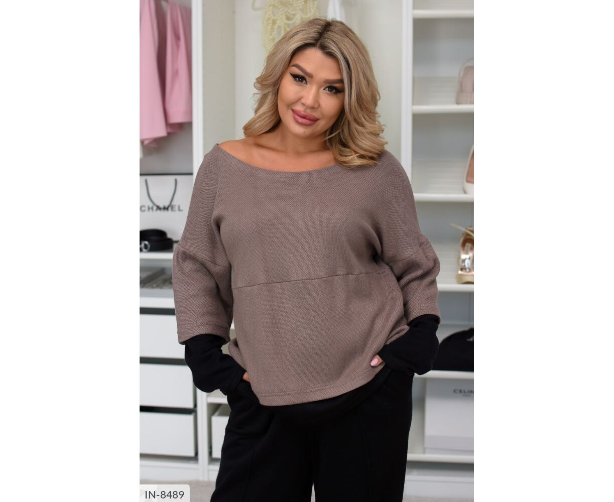 Кофта прямого крою зі вставками на рукавах і знизу з ангори арктик