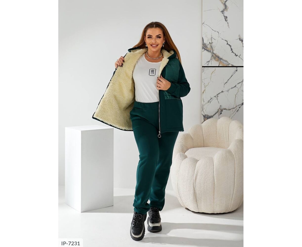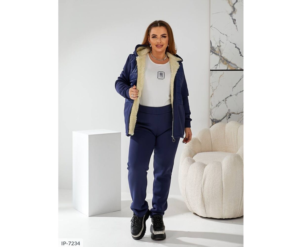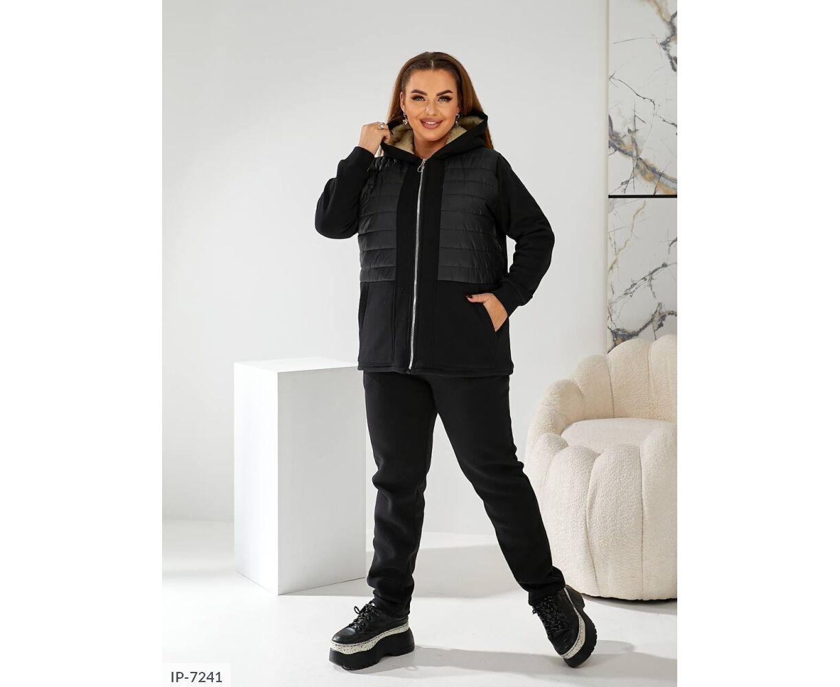 Тканина: трикотаж 3-х нитка начіс, підклад (поличка та спинка, капюшон) штучна овчина