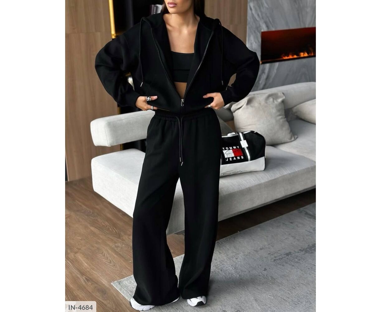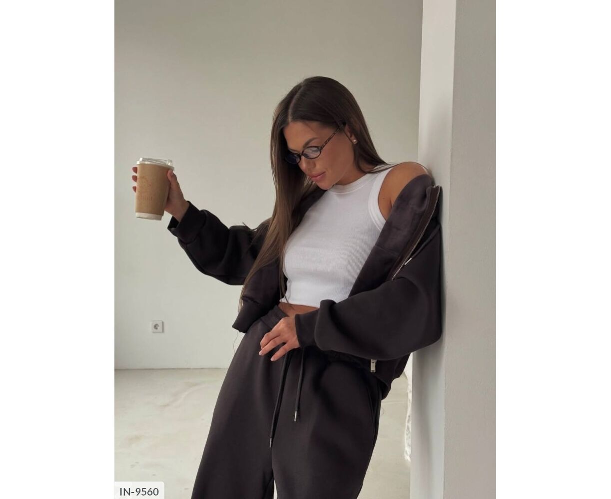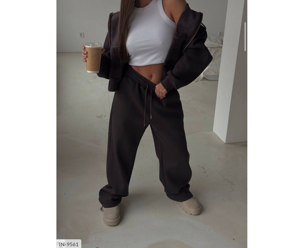 Твій ідеальний варіант на прохолодну пору року. Теплий, зручний та дуже стильний костюм. Зіп худі та штани вільного крою. З шнурками. На високій посадці