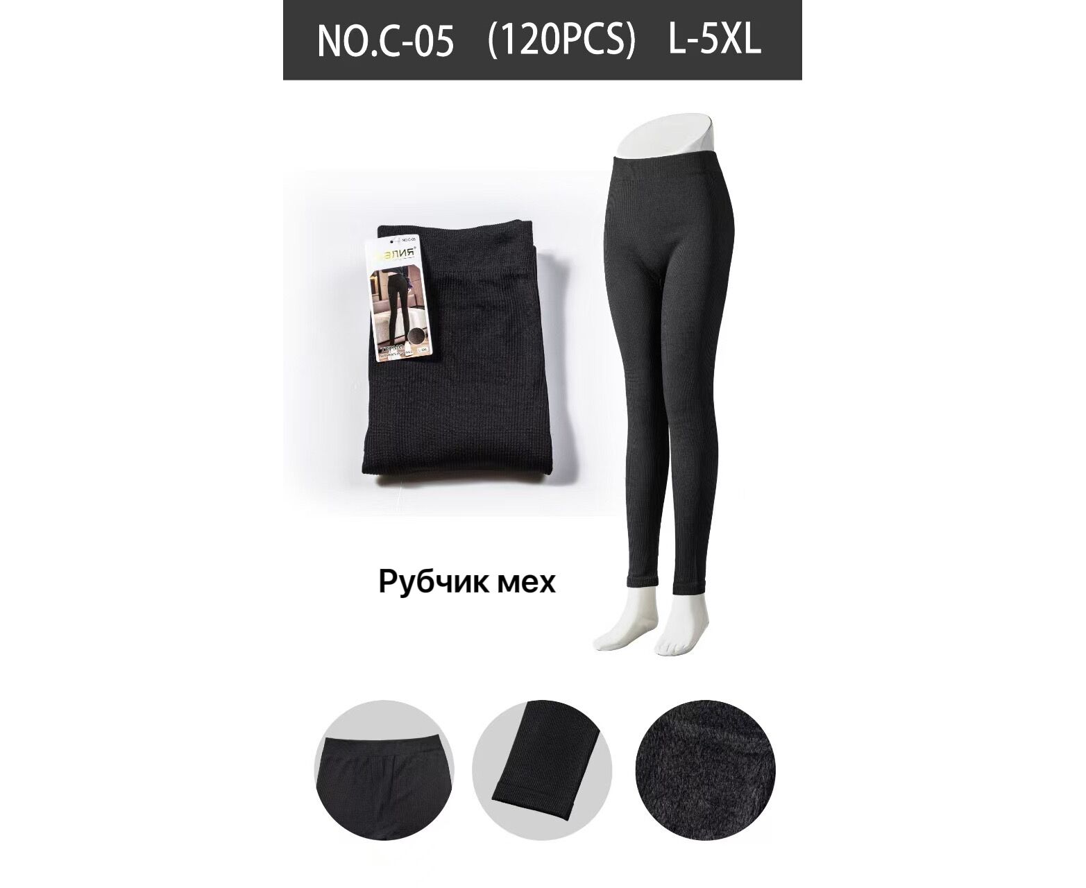 Лосини жіночі теплі C05 black рубчик/мех р.L-5XL "Алия" недорого оптом від прямого постачальника