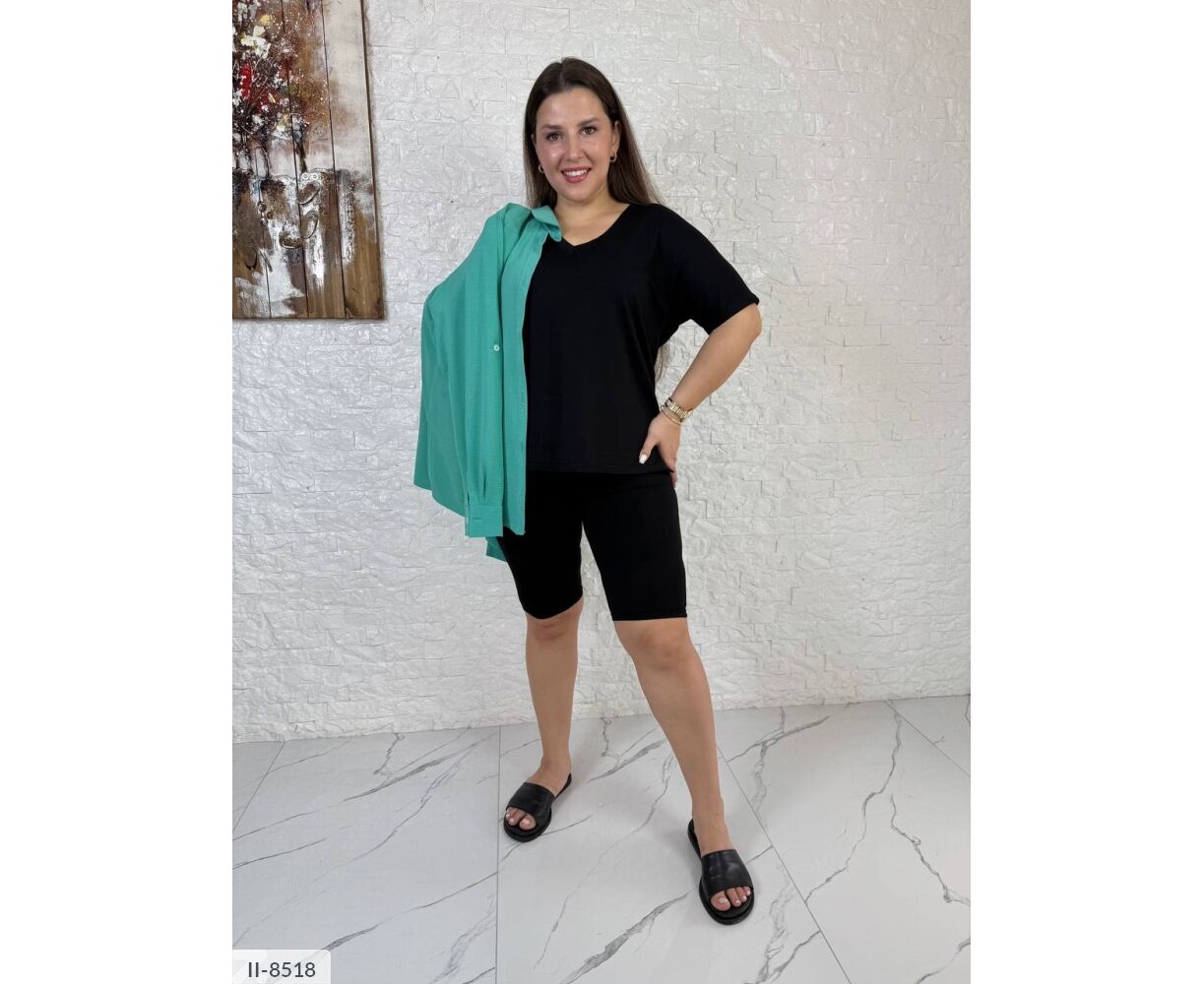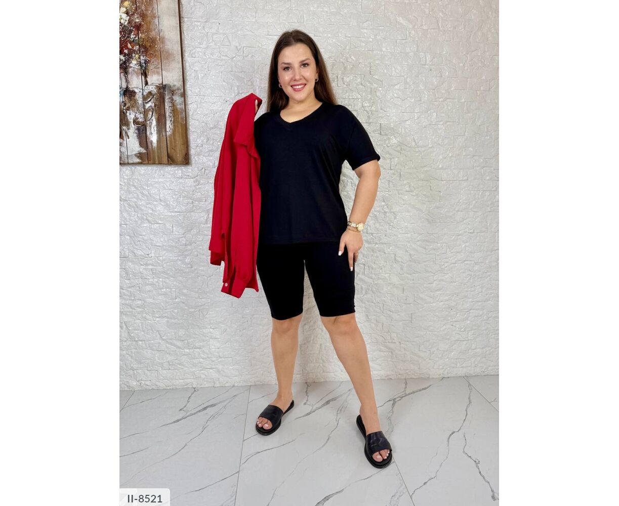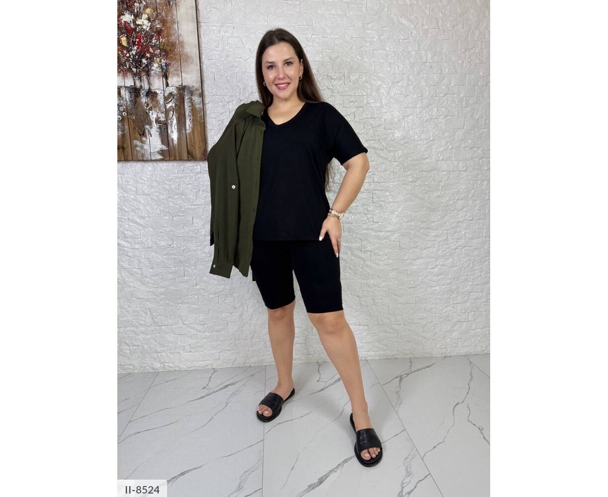 Футболка з v-подібним вирізом на грудях, з боків маленькі розрізи, красиво лягає по талії і стегнах, рукав до ліктя