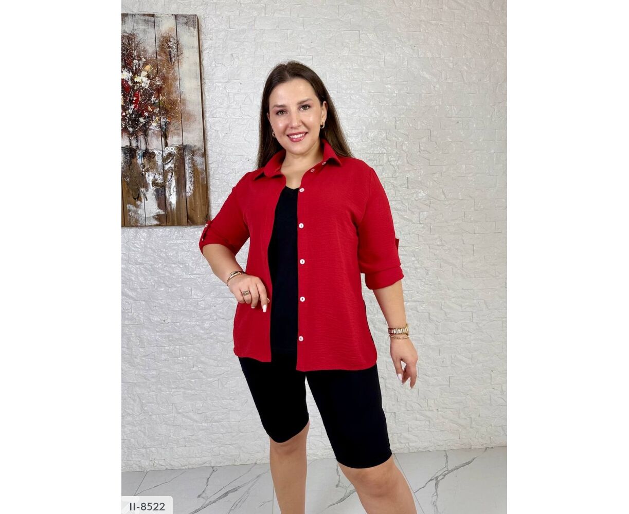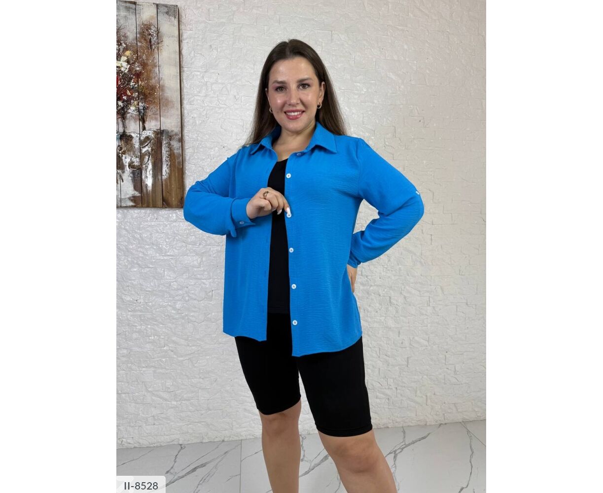 Сорочка з довгим рукавом + патик (можна регулювати довжину рукава), застібається на перламутрові гудзики, з боків розрізи (можна зав'язувати сорочку і зберегти ззаду довжину )