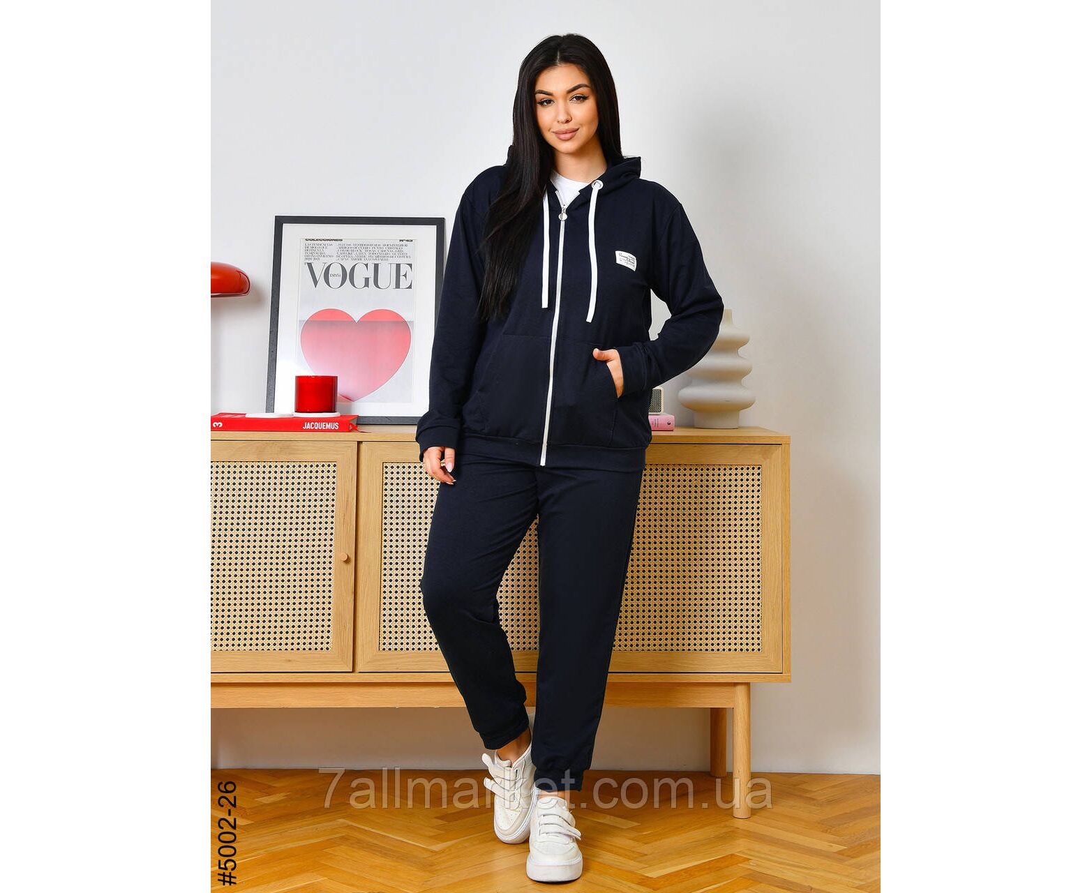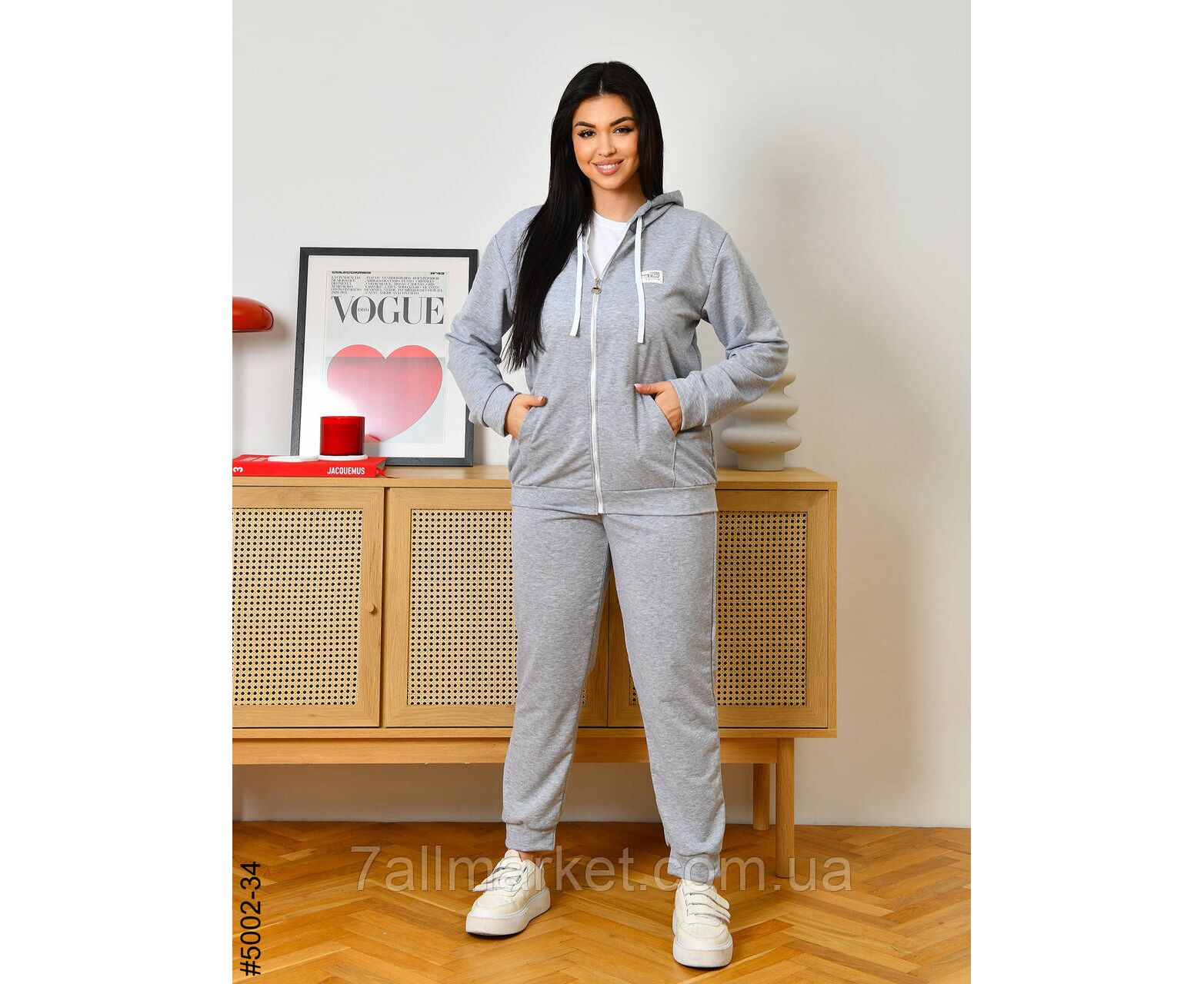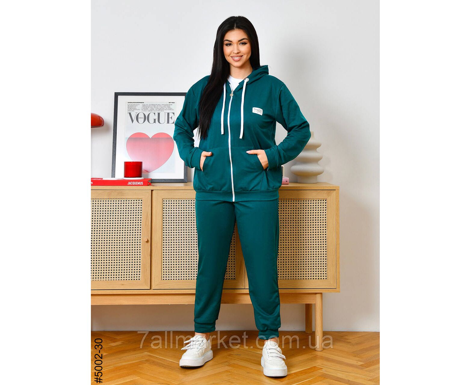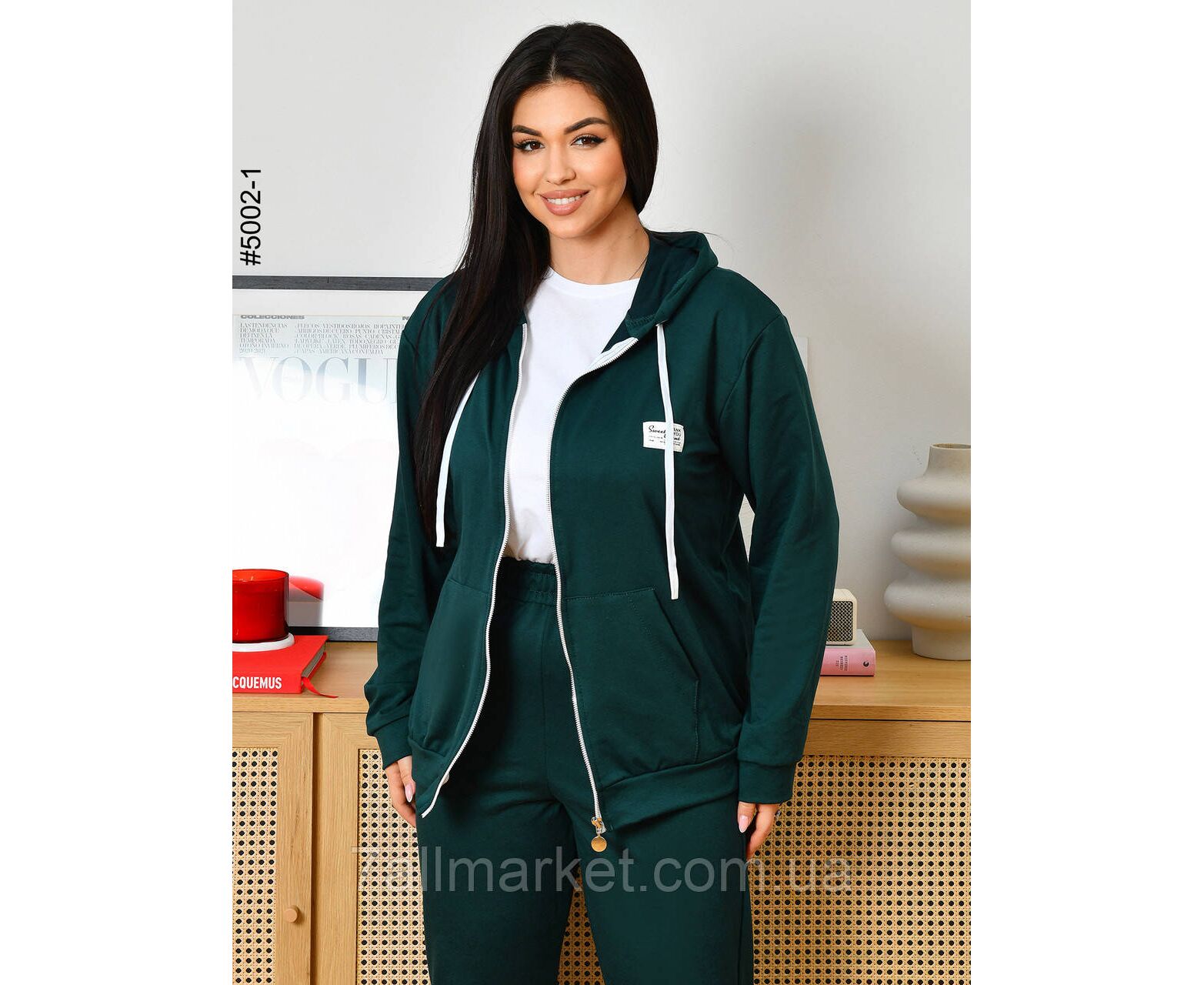 Жіночий спортивний костюм із двонитки в батальних розмірах. Верх — кофта з капюшоном і блискавкою, обладнана двома кишенями; низ — зручні штани на манжеті та комфортній широкій резинці. Чудова повсякденна модель, повномірна розміри.