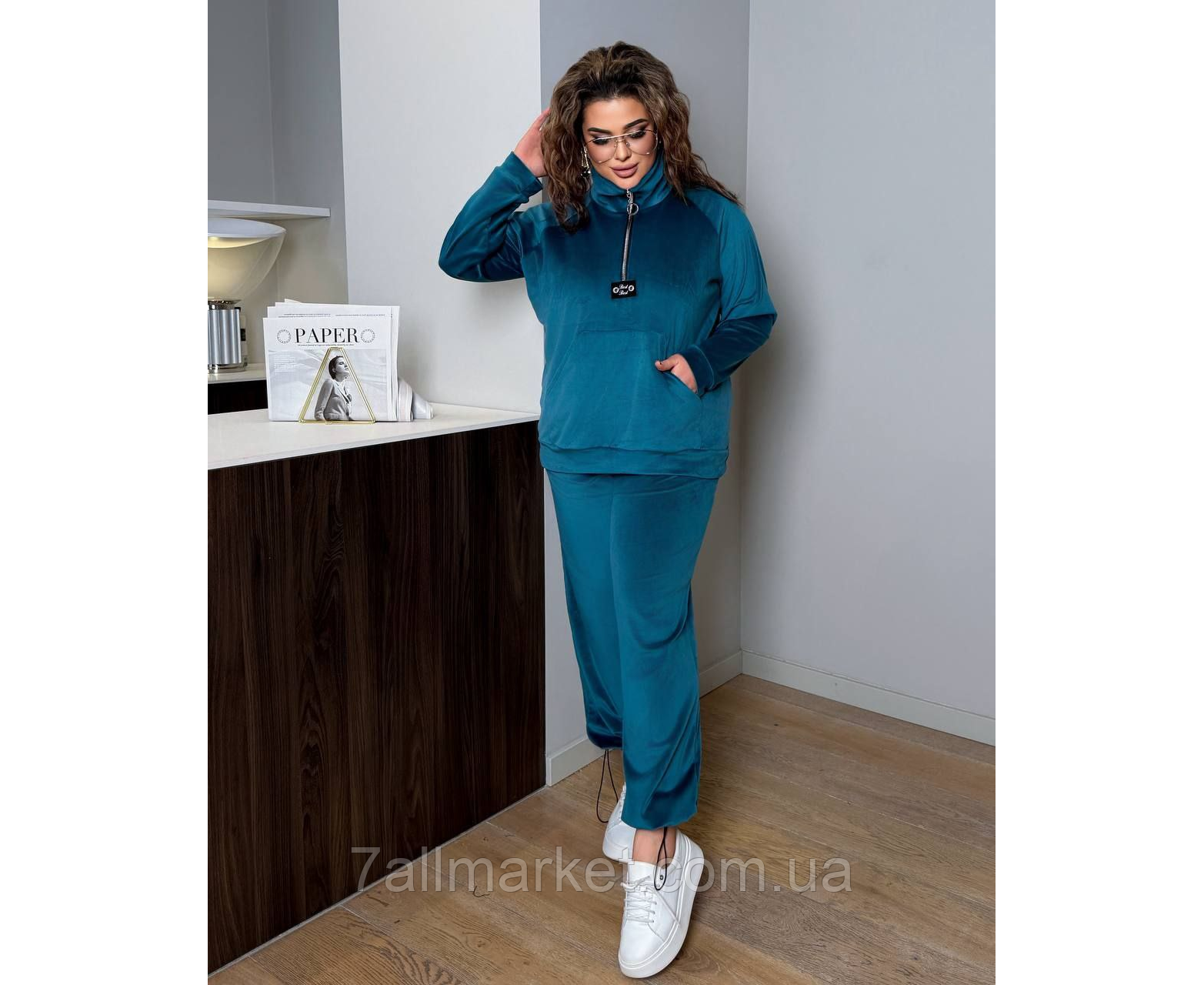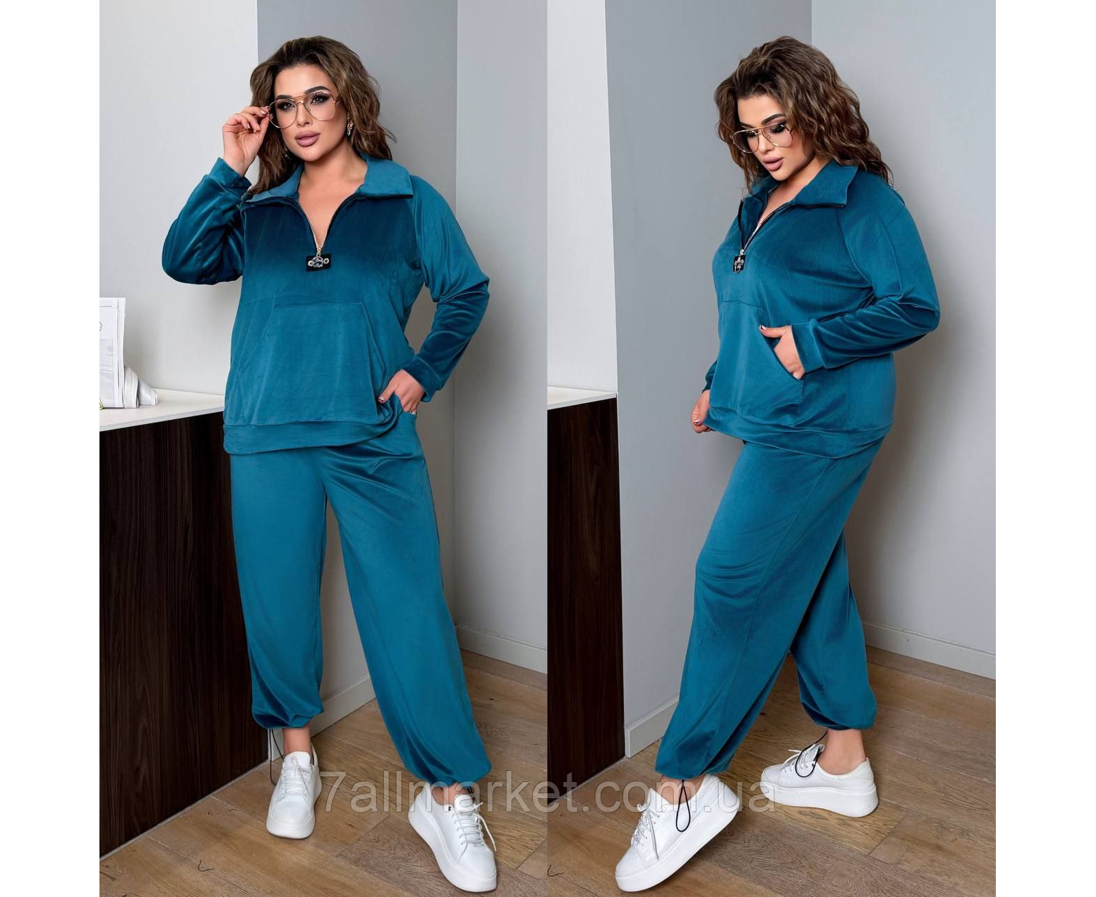 Костюм двійка Модель № 7992-1 ЯКІСТЬ ВІДМІННА Розмір :НОРМА‼️42-44; 46-48‼️ БАТАЛ ‼️ 50-52; 54-56; 58-60‼️ Тканина : велюр спорт ( гарно тягнеться ) Довжина кофта : 72 см.. Довжина рукава: 74 см. Довжина штанів : 106 см Штани з високою посадкою , пояс на гумці , бічні кишені , низ на фіксаторі . Кофта прямого покрою , з коміром на блискавці , кишеня кенгуру