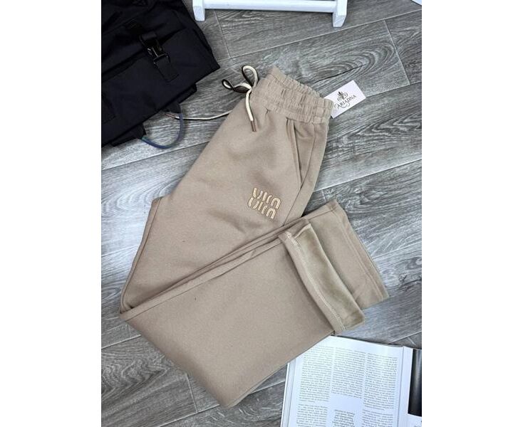 Штани спортивні жіночі теплі 989 beige р.3XL-7XL "BONJOUR" недорого оптом від прямого постачальника
