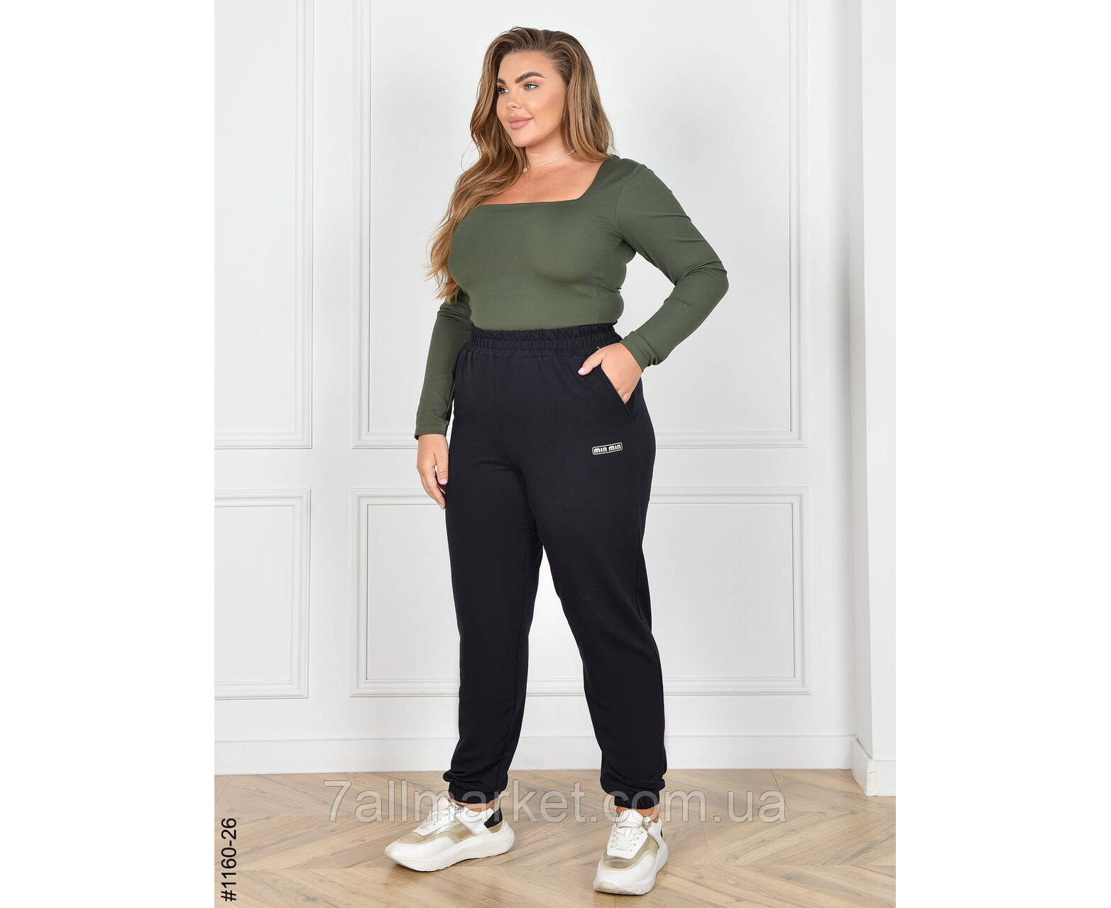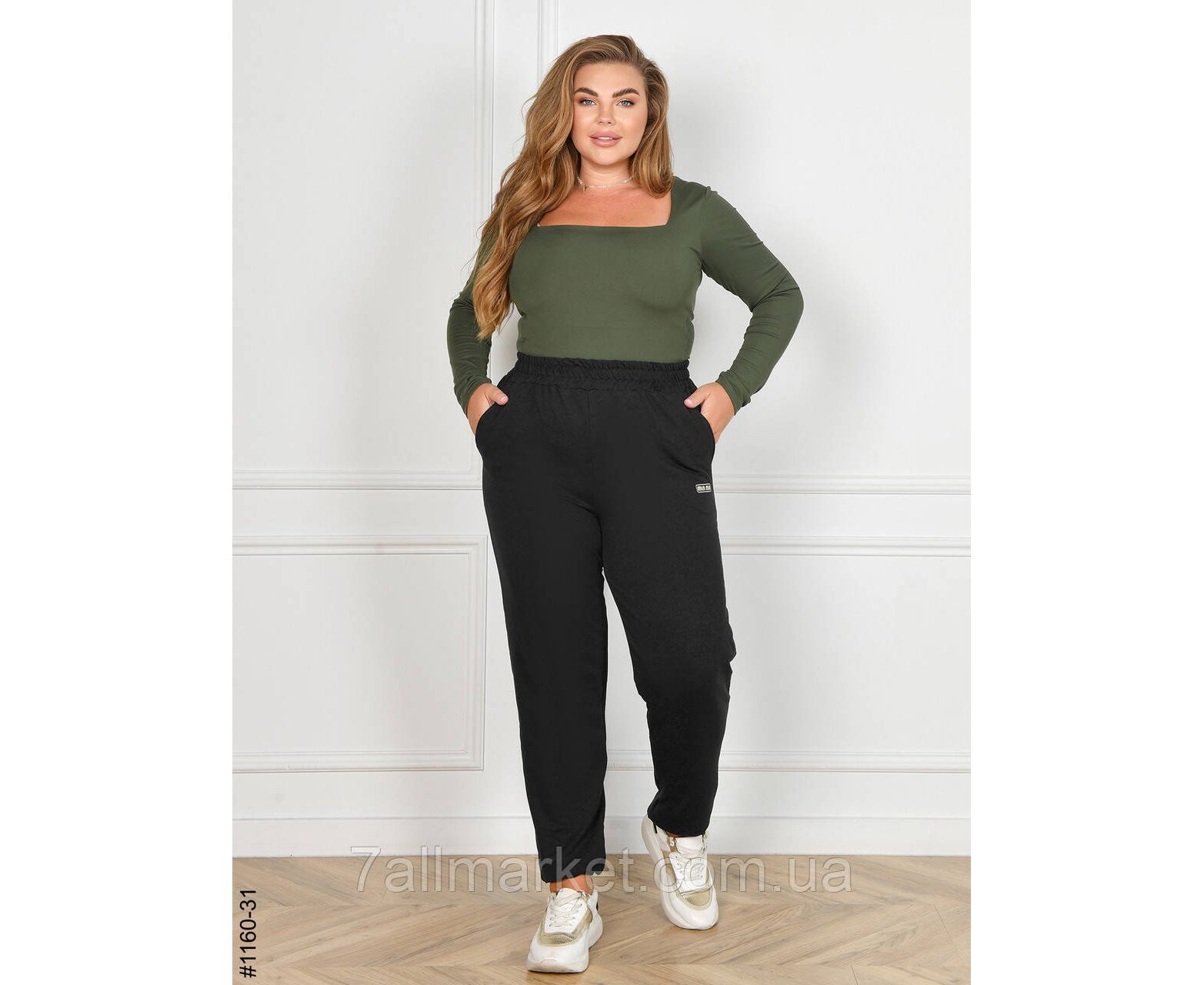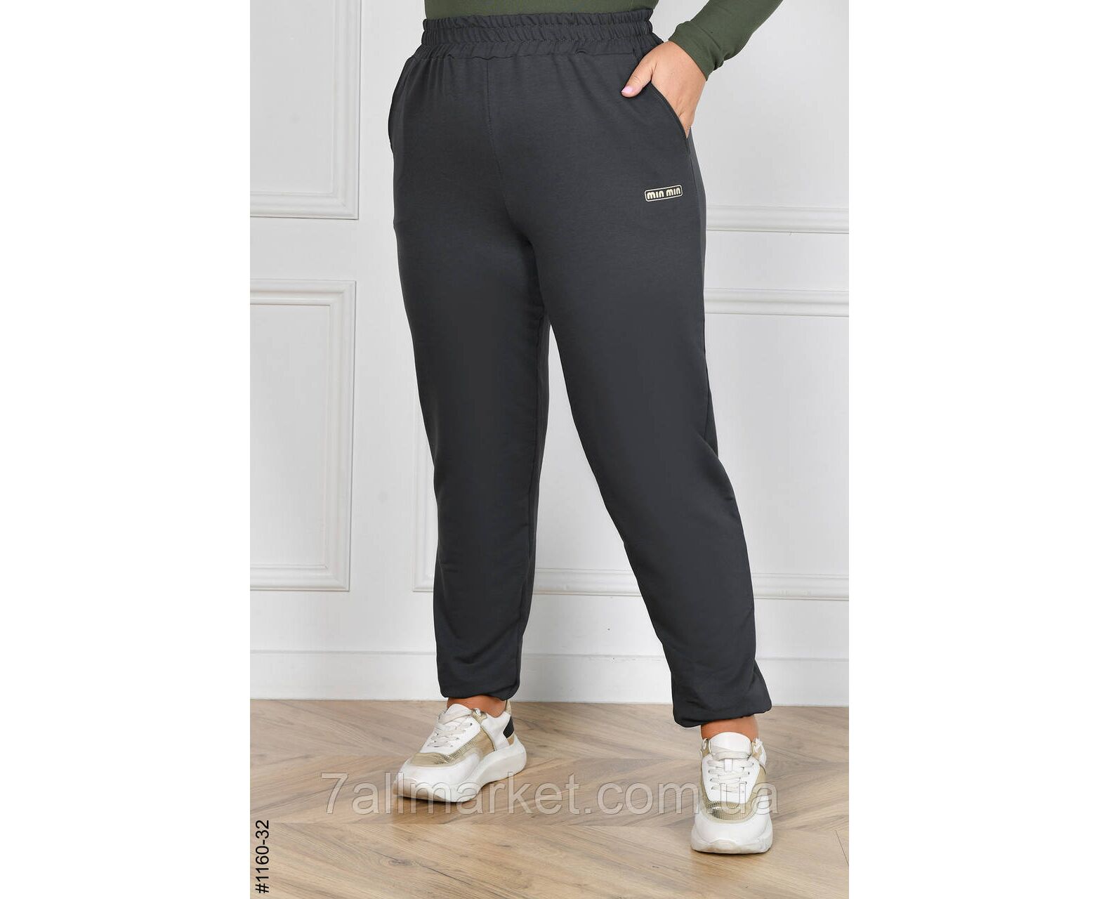 Стильні жіночі джоггери у батальних розмірах; у поясі широка кофмортна резинка, не перекручується.