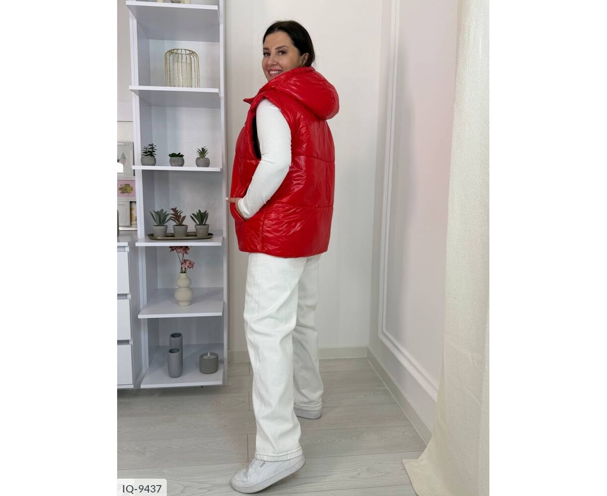 Цікава жилетка, яка не залишить вас непоміченою. Жилет на молнії, з капюшоном, по низу для зручності шляпна резинка, щоб затягнути виріб, на грудях нашивка